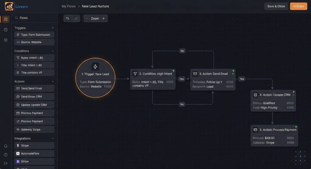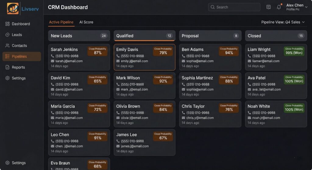Livserv AI integrates directly with your CRM — Salesforce, HubSpot, Zoho, or any custom system — and operates seamlessly inside your workflow.